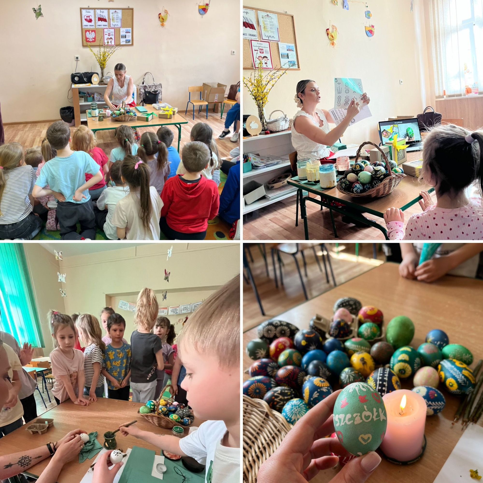 Zajączek Wielkanocny - Warsztaty ze zdobienia pisanek metodą batikową z Panią Jolą z Koła Gospodyń Wiejskich -Gałązki - sala 9